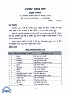 भाजपा ने दिल्ली विधानसभा चुनाव के लिए 29 उम्मीदवारों की दूसरी लिस्ट जारी की
