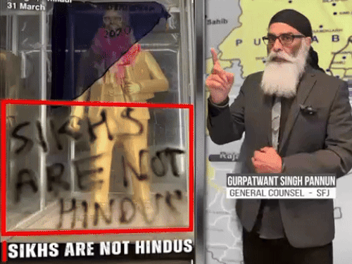 सिख फॉर जस्टिस (SFJ) के आतंकवादी गुरपतवंत सिंह पन्नू का खालिस्तानी नारेबाजी का दावा, अंबेडकर की प्रतिमा पर लिखे गए आपत्तिजनक संदेश