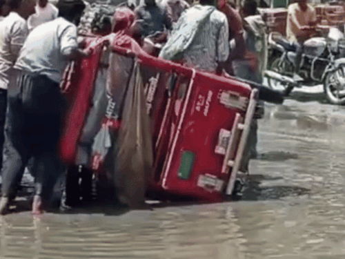 फाजिल्का: बारिश के पानी में सड़क धंसने से पलटा ई-रिक्शा, 4 महिलाएं घायल, लोगों ने प्रशासन पर उठाए सवाल